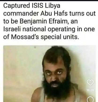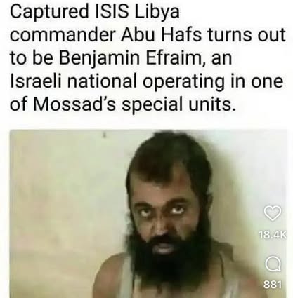 | IMG | Antisemitic | ![]() [Image/Meme] The image shows a man with a disheveled appearance, labeled as a captured ISIS commander. There is text above and below the image that claims he is an Israeli national and a Mossad operative. | |