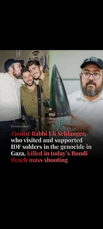 | IMG | Antisemitic | ![]() [Image/Meme] The image shows a man holding a weapon, with a caption underneath that makes a claim about his identity as a member of the IDF (Israel Defense Forces) who has served in Gaza. The image's layout suggests it attempts to connect this individual to the Bondi Beach attack. | |