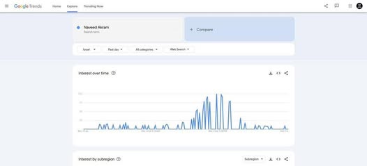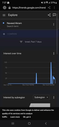 | IMG | Antisemitic | ![]() [Image/Meme] The image shows a Google Trends interface, specifically focused on interest over time for the search term 'Naseed Akram'. It displays two graphs: one showing overall interest trends and another showing interest by sub-region or subscription. | |