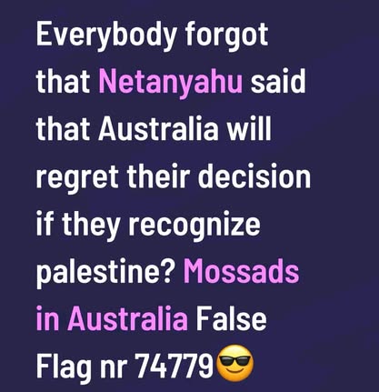 | IMG | Antisemitic | ![]() [Image/Meme] The image contains text suggesting a conspiracy theory regarding the attack, mentioning Netanyahu and implying the involvement of Mossad with the phrase 'False Flag'. | |