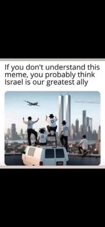 | IMG | Antisemitic | ![]() [Image/Meme] The image depicts a group of people on a van, raising their arms towards the sky, seemingly celebrating as planes fly in the background, likely referencing the 9/11 attacks with the Twin Towers visible in the background. | |
