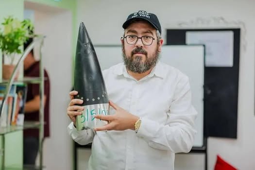 | IMG | Antisemitic | ![]() [Image/Meme] A man holding what appears to be a large artillery shell, wearing a black cap and white shirt, with glasses and a beard. He is standing in a neutral setting, possibly a room or office space. | |