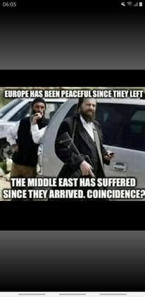 | IMG | Antisemitic | ![]() [Image/Meme] The image shows two men, one appearing to take a photograph or use a phone on the left, and another man walking towards a vehicle on the right, both dressed in clothing associated with Jewish identity. The text in the meme suggests a negative correlation between Jewish presence in the Middle East and peace in Europe, implying that their arrival has caused suffering in the Middle East. | |