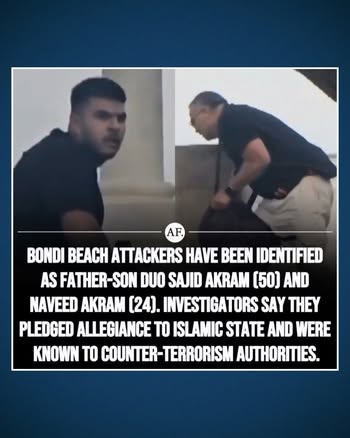 | IMG | Praising Muslim Hero | ![]() [Image/Meme] The image shows a still from a video featuring an incident at Bondi Beach involving a man disarming an attacker. The left side depicts the moment of the attack, while the right side presents the person who intervened. A text overlay identifies the individual as an 'Aussie hero' who disarmed the attacker. There are graphical elements highlighting key features of the scene, such as arrows and circles. | |
