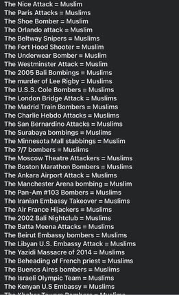 | Y.H. | Other | So not just Muslims do terrorist attacks??? Because the shooters werent Muslim! 😳😳 Wait! Does Christians do terrorist attacks? I was today years old when I found that out 😒 | |