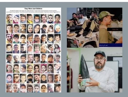 | IMG | Antisemitic | ![]() [Image/Meme] The image features two distinct sections: on the left, a collage of children's faces, accompanied by the text 'They Were Just Children', emphasizing that a group of at least 487 people who died in a specific context were children. On the right, there is an image of a man holding a large artillery shell, with another photo showing military personnel seated on a vehicle. The juxtaposition seems meant to elicit strong emotional reactions related to victims and perpetrators in a broader political conflict. | |