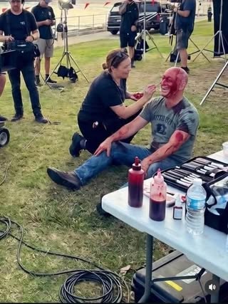 | IMG | Antisemitic | ![]() [Image/Meme] The image shows a man sitting on the ground with fake blood on his face and body while someone is applying makeup to him. There are people in the background, along with equipment typically used for filming. | |