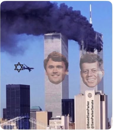| IMG | Antisemitic | ![]() [Image/Meme] The image depicts the Twin Towers of the World Trade Center on fire with two faces superimposed on them—one appears to be a well-known figure and the other resembles John F. Kennedy. There is also a Star of David symbol included in the image. | |