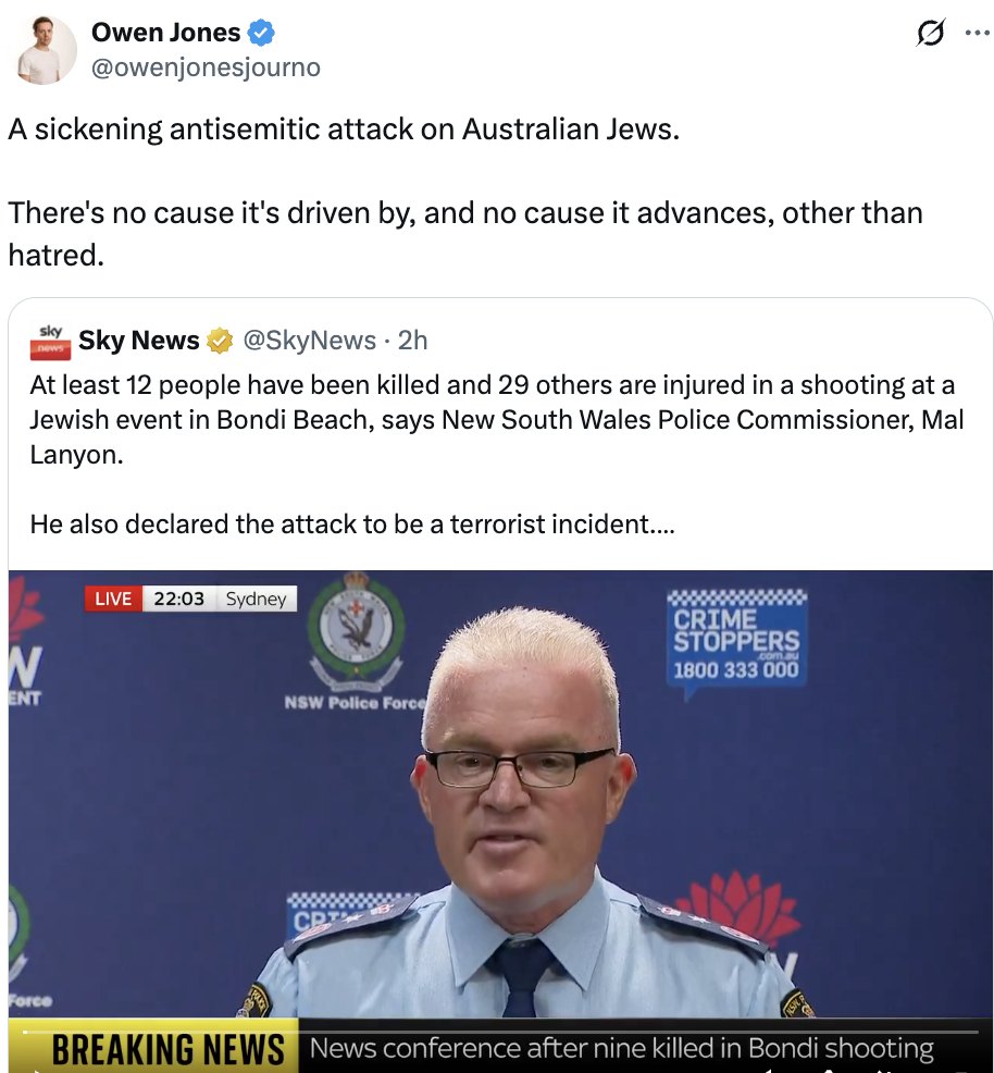 Responses to Owen Jones' Post on the Bondi Beach Attack